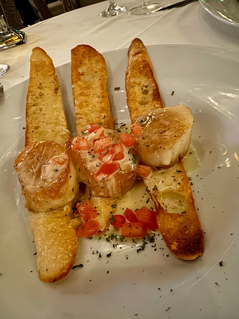 For the main course, I opted for the appetizer version of sea scallops, a dish that exemplified perfection in simplicity. My husband, Wayne, enjoyed the blackened redfish seasoned with Cajun spices. Each bite was a testament to the culinary expertise of Mastro’s Ocean Club.