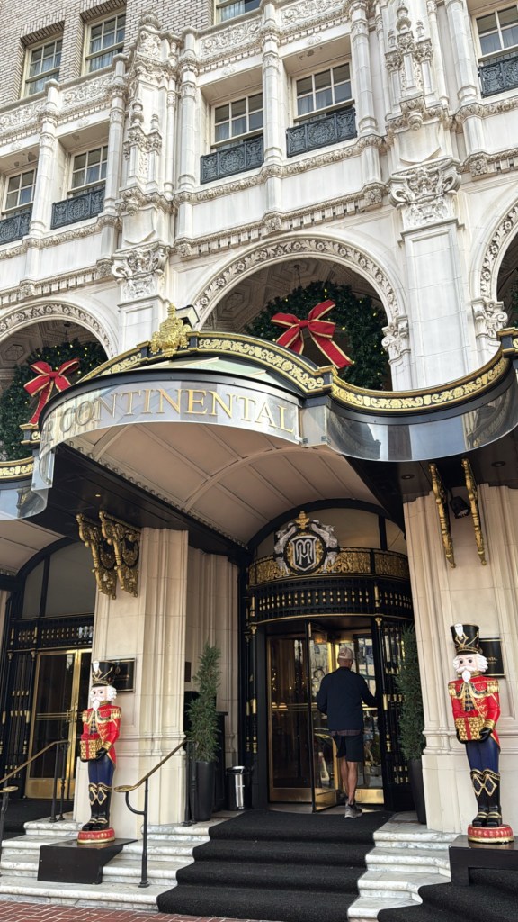 We stayed at the Intercontinental Mark Hopkins, perched atop Nob Hill. This historic hotel is pure old-school elegance with just the right amount of modern luxury. Fun fact: It’s been around since 1926 and has hosted everyone from Hollywood stars to politicians. Walking into the lobby, decked out with twinkling Christmas lights and festive garlands, felt like stepping back in time—in the best way.