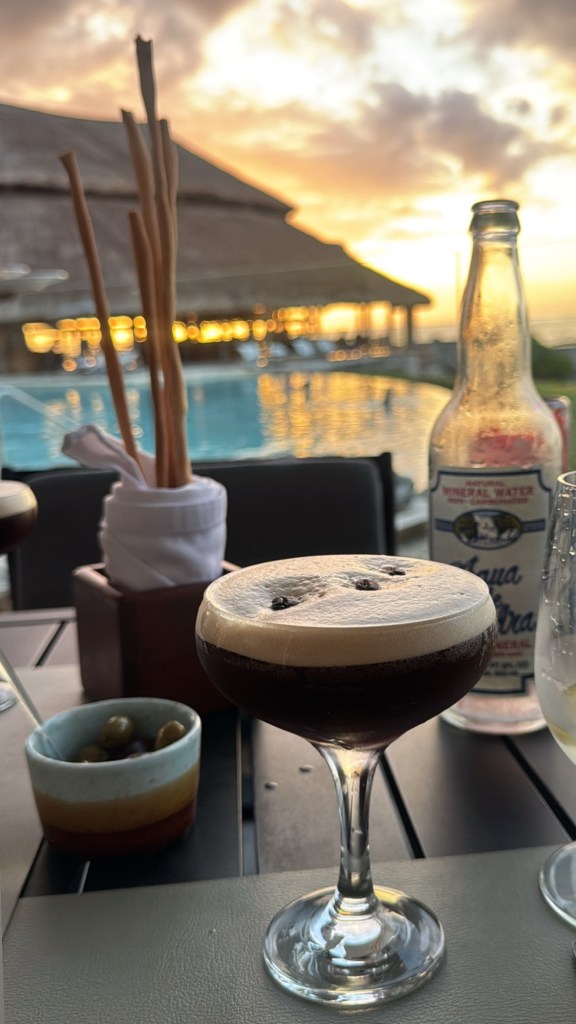We kicked things off right by flying our favorite—United. And of course we splurged on first class. Best decision ever. The flight was quick and smooth, and to our surprise, they now have espresso martinis on the inflight menu! (Yes, we tried them. Yes, they were delicious.) Service was amazing, as usual, and before we knew it, we were touching down in paradise.