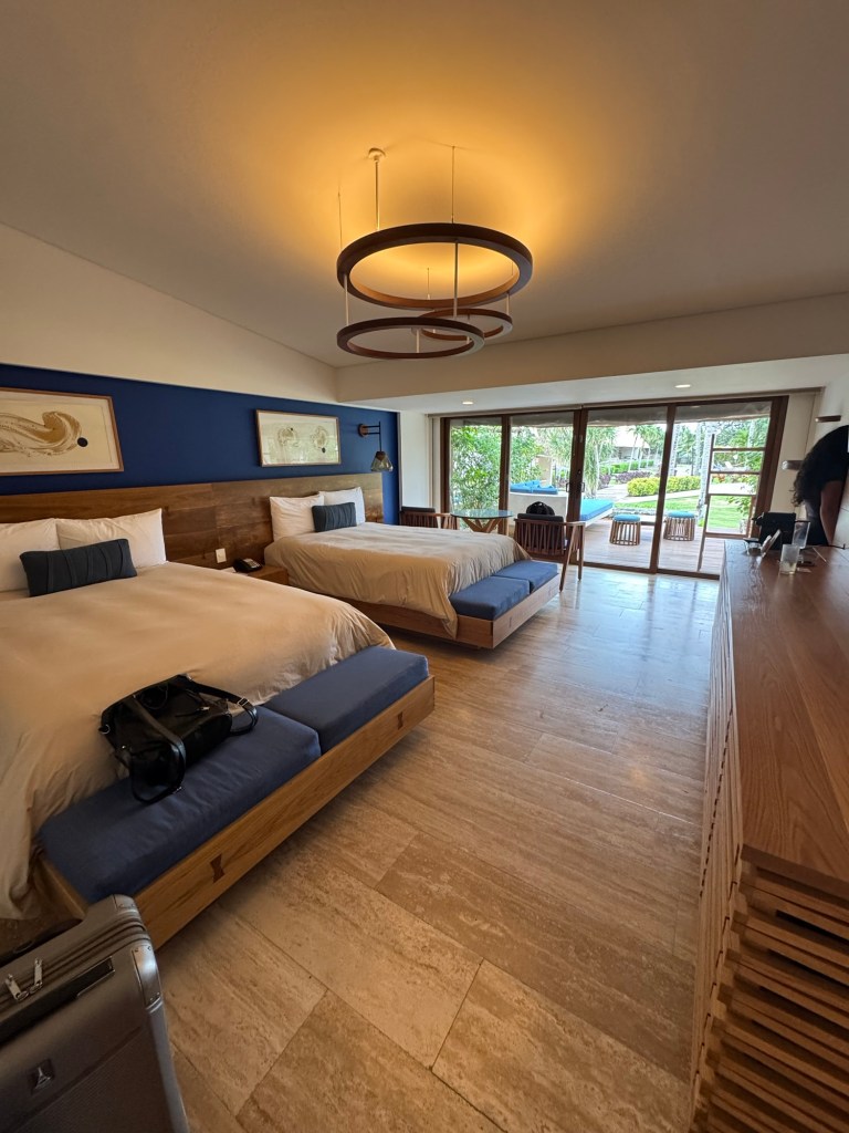 Check-in was seamless, and our garden-view room was beautiful. Two comfy queen beds, a spacious layout, and a perfect spot right by the adult-only Tranquility Pool—which, as the name suggests, was blissfully quiet. We even had an outdoor shower!