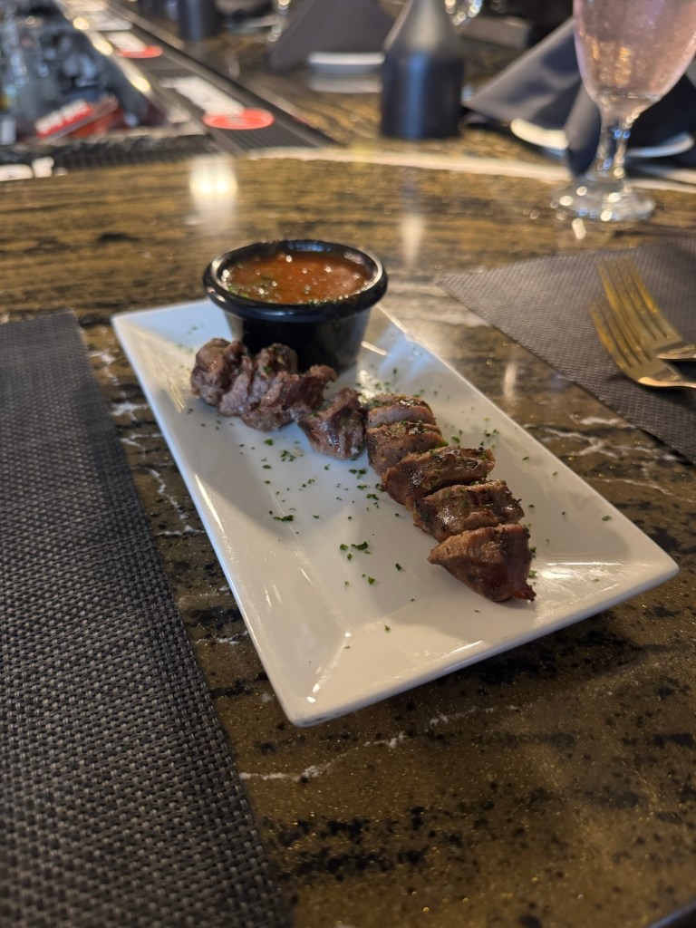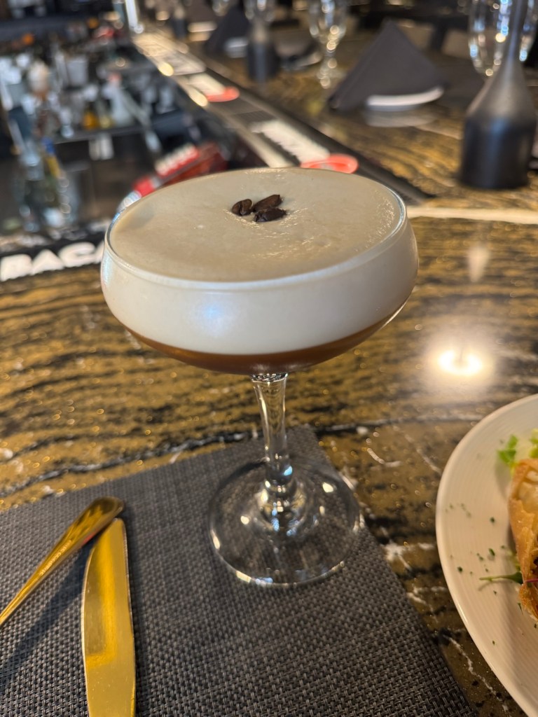 I started with a Lavender French 75—light, floral, bubbly, and just what I wanted. Wayne had a classic martini, then switched it up with a Nigerian lager called Star, which was crisp and refreshing. I ended with a custom Ketel One espresso martini—creamy, bold, and the perfect little nightcap.