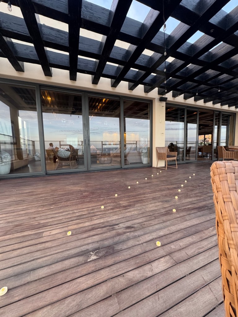 On our actual anniversary night, they arranged a private, candlelit dinner on the VIP whale-watching terrace—set up exclusively for us. Outdoor, romantic, beautifully styled, and completely removed from the rest of the resort. It felt intimate and intentional, not staged.