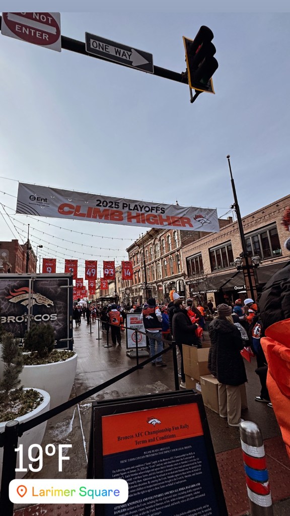 Saturday brought a fun surprise with the Denver Broncos Rally at Larimer Square — great energy, bundled-up fans, and a classic Denver winter vibe. On Sunday, we watched the game at Federales instead of heading out… and were very glad we did. The snow came down hard during the game, making the warm bar, good food, and TVs the right call.
